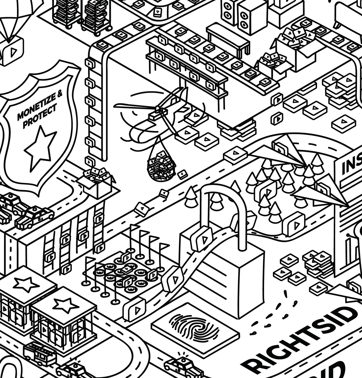 I got a fun chance to create a "Zefr Land" mural which is essentially a doodle-ized version of what Zefr does. I started by illustrating out each department separately, then combining them at the end to create this giant mural.